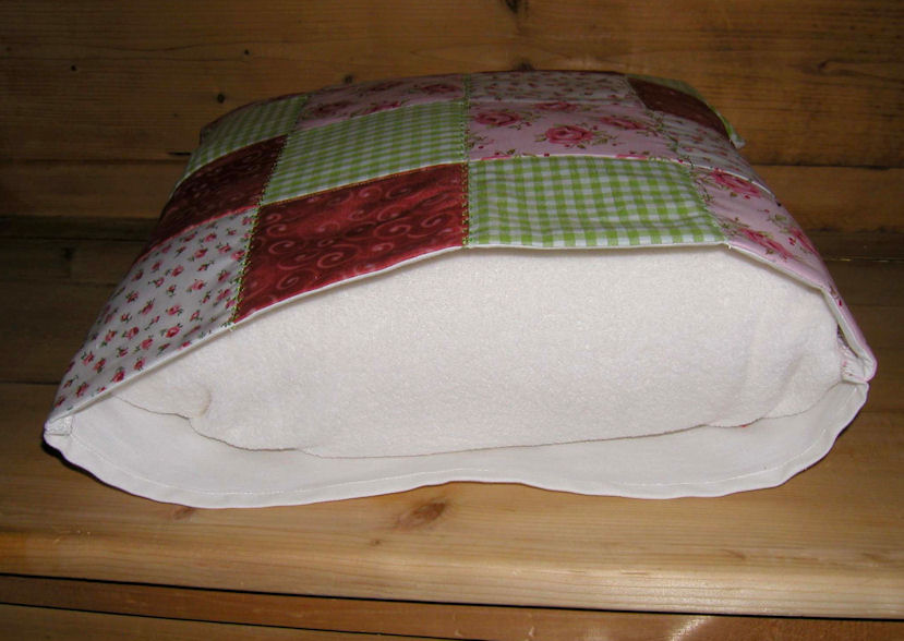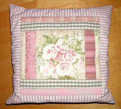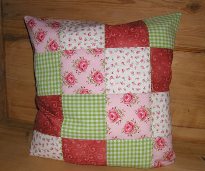 Zauberkissen "Rosenpatchwork", Die Decke ist aus kuschelweichem Microfleece und verschwindet zusammengelegt als Kissenfüllung 42 cm x 42cm Art.-Nr. 112 |